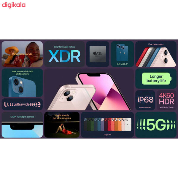 گوشی موبایل اپل مدل iPhone 13 A2634 دو سیم کارت ظرفیت 128 گیگابایت و رم 4 گیگابایت